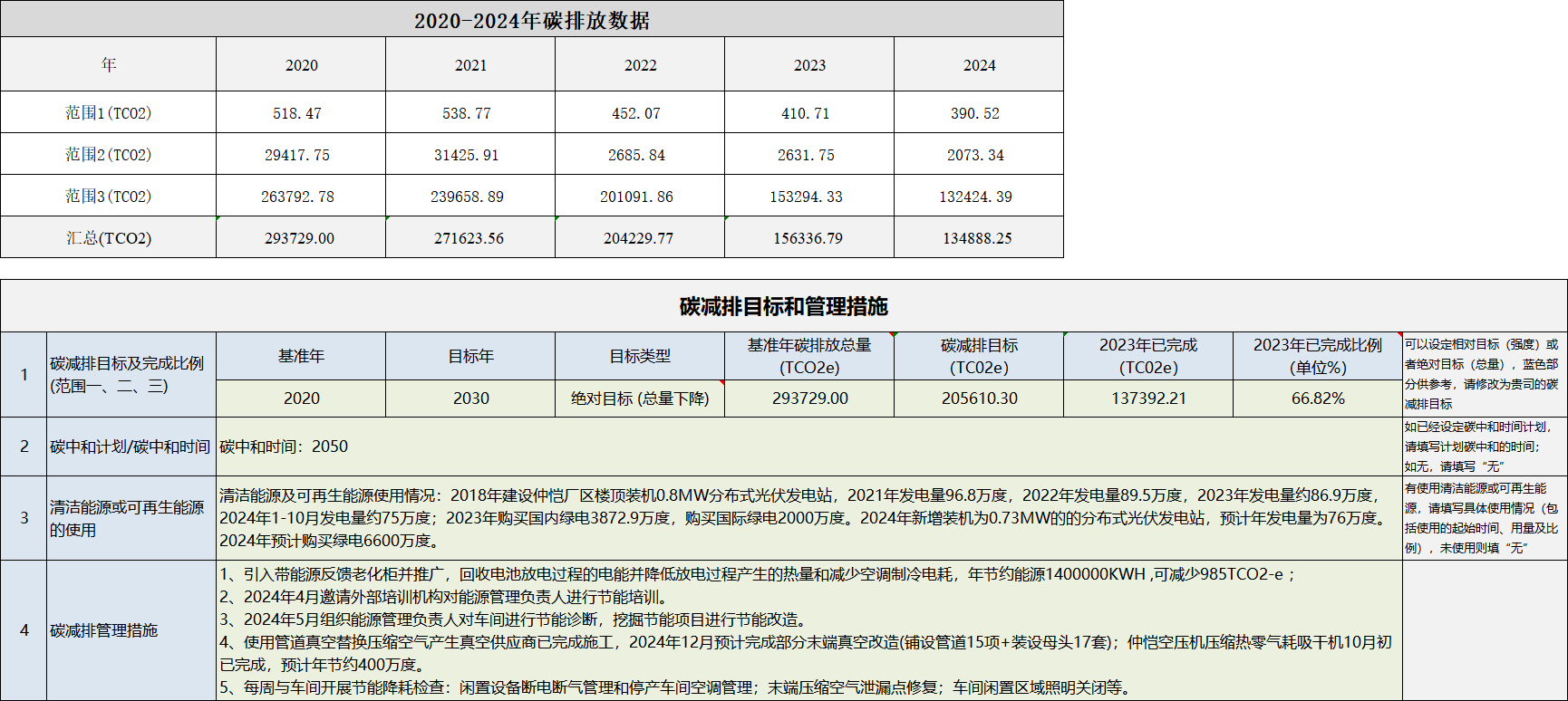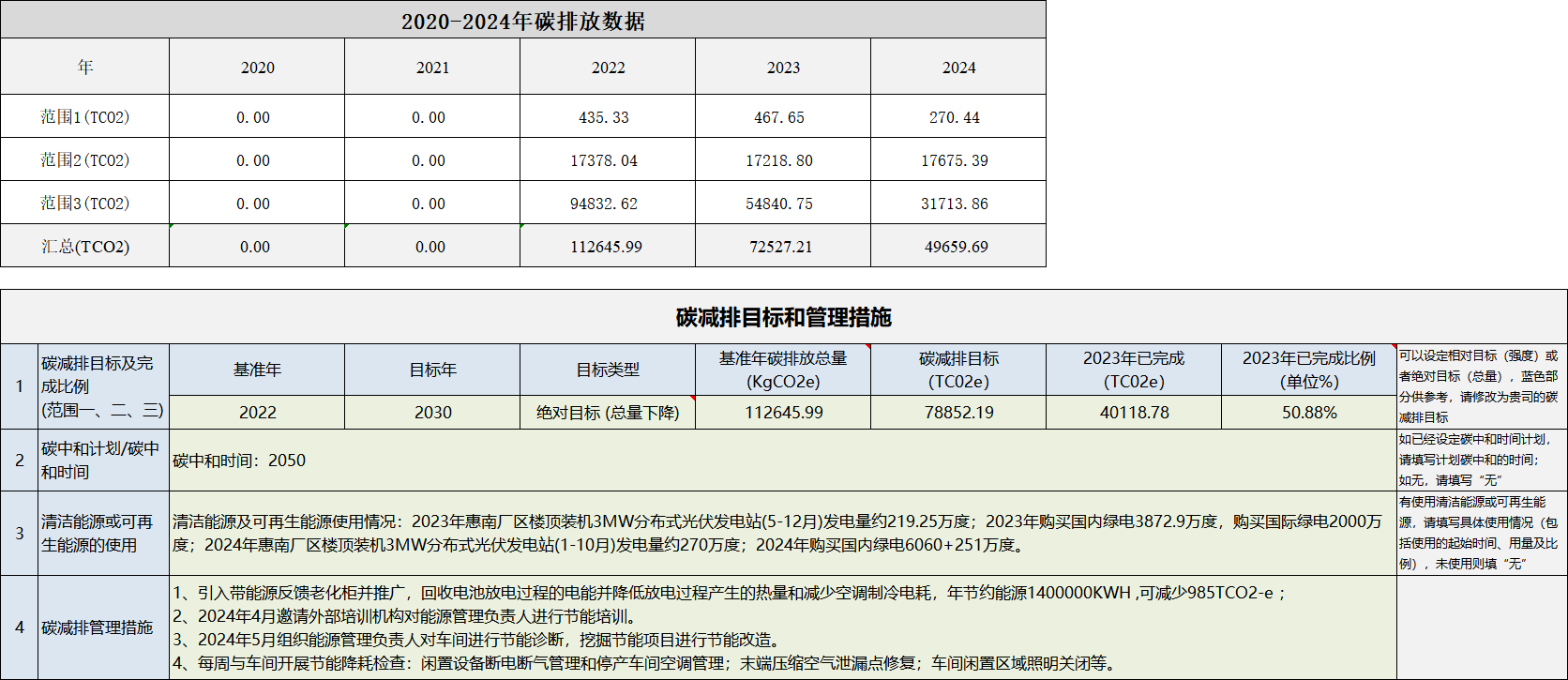 惠南廠區碳減排目標和管理措施